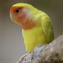 Peach-faced Lovebirds are a color mutation of the Rosy-faced Lovebird, a small species of parrot. The rest of this information will cover natural behaviours of the Rosy-faced Lovebird.